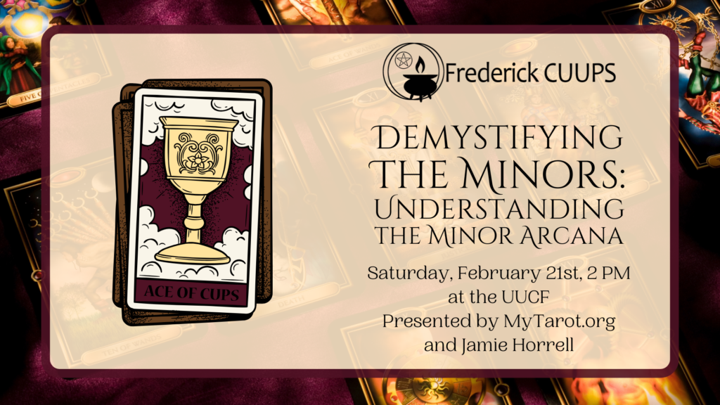This class is designed to help participants deepen their understanding of the Minor Arcana in Tarot by moving beyond memorized keywords and into an intuitive, story-based approach. Many Tarot readers struggle with the minors because they seem less vivid than the majors. This session aims to “demystify” them by connecting the cards to relatable concepts, historical allegories, and practical interpretations. See link for details https://frederickcuups.com/event/demystifying-the-minors/